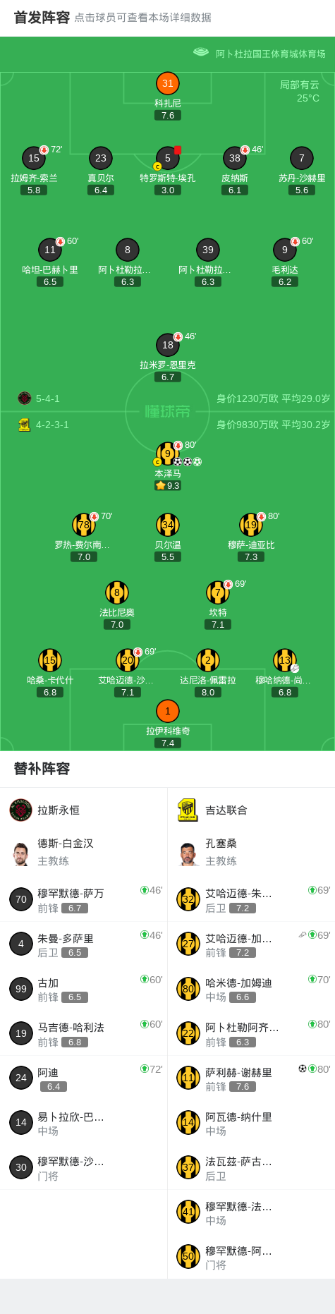 第28分钟,吉达联合球员穆哈纳德-尚基提助攻本泽马打入一球。