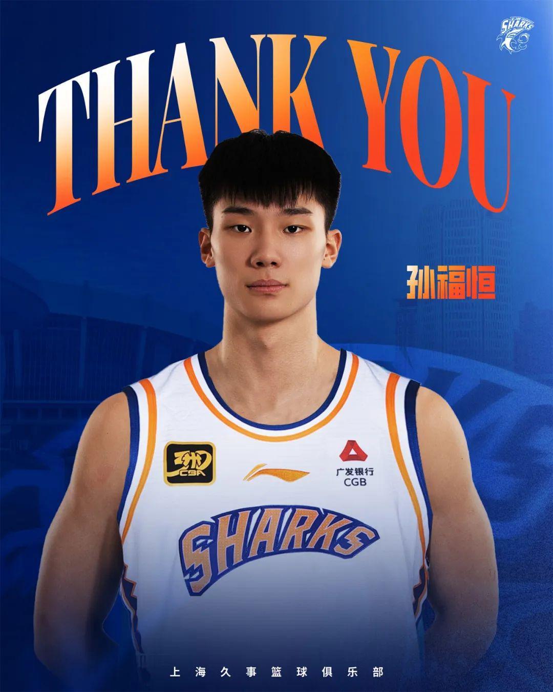 在我们欢迎张镇麟加入球队的同时,也要向我鲨两名球员赵森、孙福恒挥手告别。赵森出生于2004年10月28日,身高201厘米,体重101公斤,司职前锋。作为我鲨青训体系培养出来的球员,他曾多次帮助球队获得青年赛事的冠军。2024年休赛期,赵森从我鲨青年队上调至一队,开启了他的CBA职业生涯。